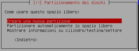 Allo step Partizionamento dei dischi è possibile selezionare: